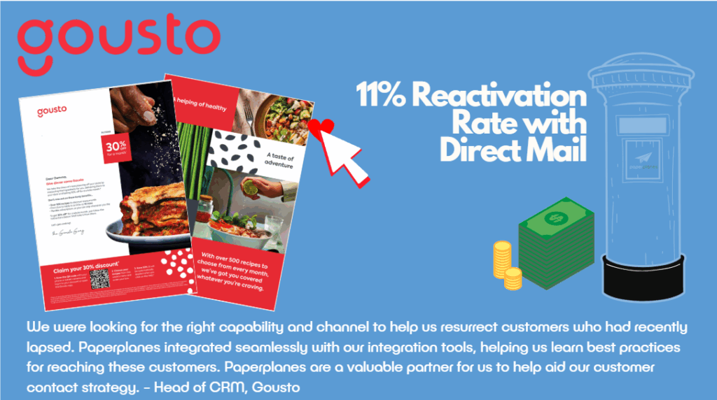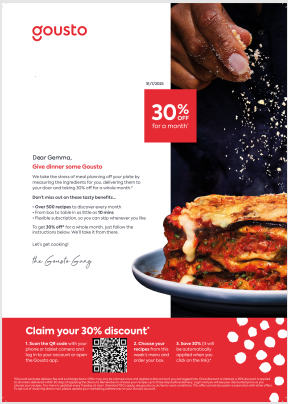 Response from digital channels had peaked in recent months so Gousto approached Paperplanes to understand if a fast, responsive and dynamically driven creative via the postal channel could make a difference for their already advanced customer journey.